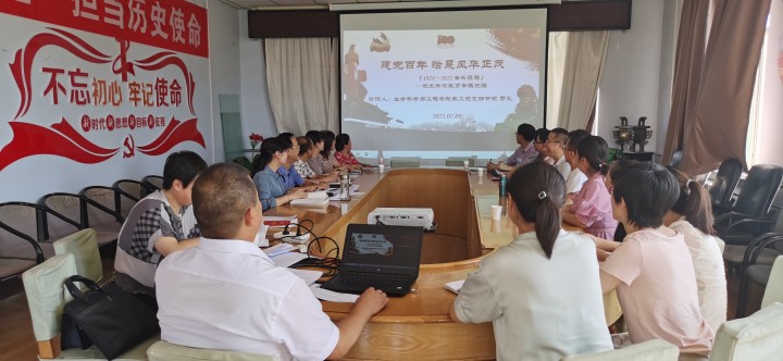 7月9日,776net必赢官网教工党支部书记为全体教工党员作了题为“建党百年,恰是风华正茂”的专题党课。党课以“一百年的时间,中国共产党带领中国人民写下了怎样的百年传奇?”为主线,引领大家回顾了中国共产党领导我们实现民族独立、国家解放、繁荣富强的光辉历程。新文化运动、五四运动、中共一大召开、长征胜利、抗日战争胜利、中华人民共和国成立、第一个五年计划完成……十一届三中全会召开、香港回归、澳门回归、加入世贸组织、北京申奥成功、党的十八大召开、党的十九大召开、中华人民共和国成立70周年大会、抗击新冠疫情取得胜阶段性胜利、832个国家级贫困县全部摘帽、中国共产党成立100周年。1921年到2021年,中国革命的面貌、中华民族的面貌、中国社会的面貌,发生了翻天覆地的变化。