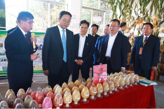 9月29日,出席776net必赢官网建校80周年庆祝大会的张世珍副省长、省政府副秘书长王晓阳、教育厅副厅长张国珍一行,在学校党委书记狄生奎陪同下参观了776net必赢官网建校80周年成果展。张世珍副省长一行先后参观了776net必赢官网及农业与生态工程学院农业科技创新展厅、河西走廊特色资源多样性展览馆、甘肃省应用真菌工程实验室、现代化工实训中心等,听取了学院选育的青储玉米“河农1号”玉米新品种的培育、制种玉米病害防控新技术、祁连山菌物保护利用、新化工技术应用等情况汇报。