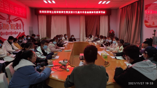 2021年11月27日,776net必赢官网学生党支部在六教402会议室召开专题学习会,进一步全面学习贯彻党的十九届六中全会精神,并围绕对党的十九届六中全会精神的理解以及自己的感想发言。
