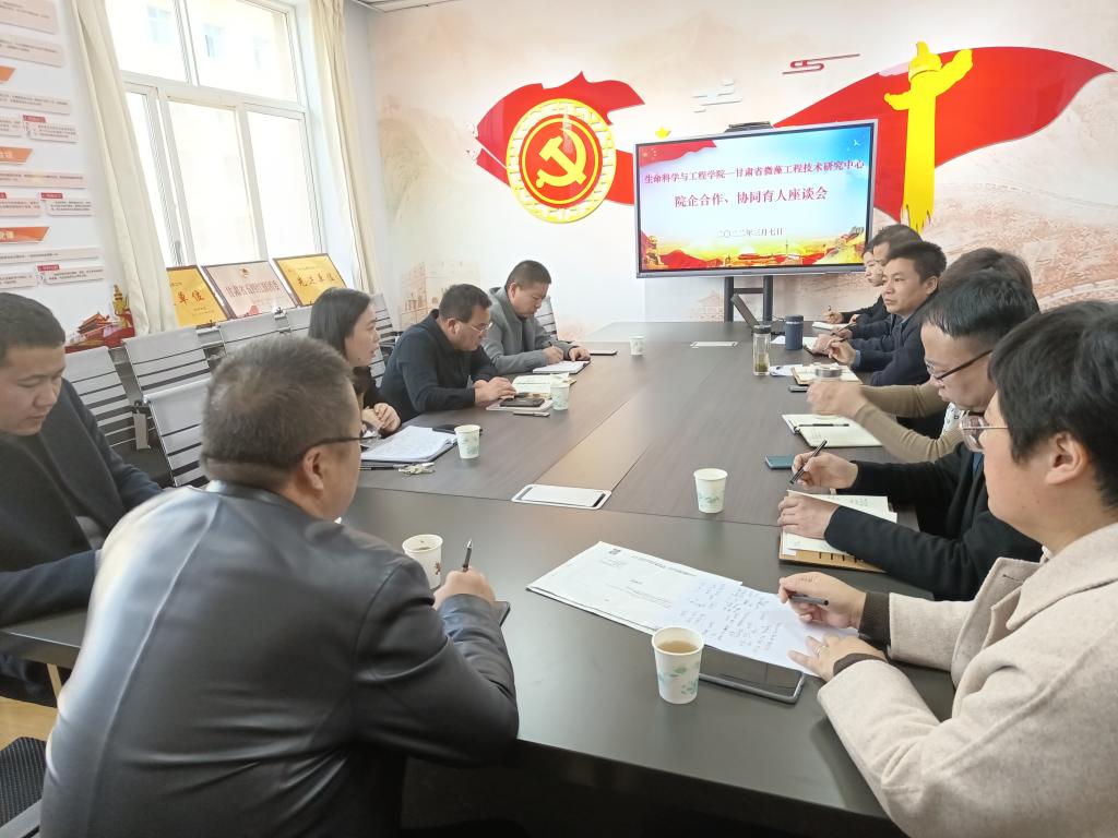 为进一步深化产教融合、协同育人,落实学校“一院一品、一院一业”特色发展要求,持续激发学院人才培养、科学研究及服务社会的后劲和活力,为社会培养高素质应用型人才,实现学科专业与产业、企业、岗位的有机对接,3月7日下午,776net必赢官网、甘肃省微藻工程技术研究中心进行了“院企合作、协同育人”座谈会,学院班子成员、各教研室主任,甘肃省微藻工程技术研究中心负责人、办公室及相关技术人员参加会议。座谈会由776net必赢官网院长杨彬主持。