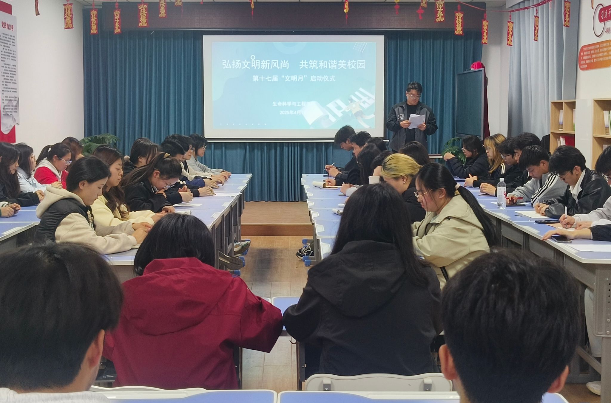 4月7日,776net必赢官网举行“弘扬文明新风尚,共筑和谐美校园”第十七届“文明月”活动启动仪式,辅导员、各班学生干部和学生代表共计六十余人参加。