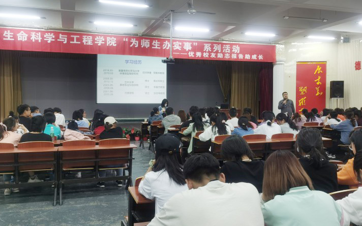 5月7日,生物科学专业2005届校友、兰州大学草地农业科技学院、草地农业生态系统国家重点实验室博士生导师张兴旭教授应邀为776net必赢官网作了题为《十字路口的选择》的励志报告。学院200余名师生参加了报告会。