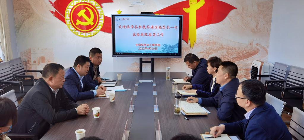 应776net必赢官网邀请,4月20日上午,临泽县科学技术局谢国栋局长一行5人来我院接洽院地合作等事宜,学院班子成员、各教研室主任参加了会议。