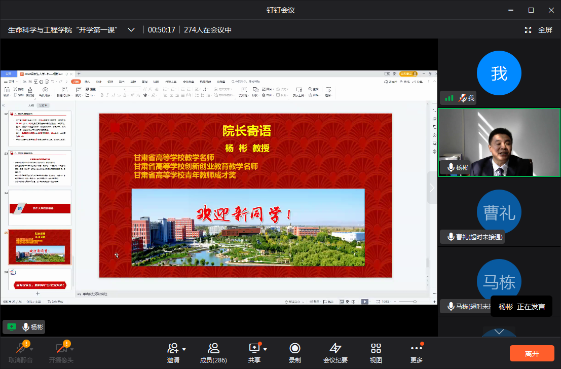 9月4日,776net必赢官网全面组织学院负责人、新生班班主任、辅导员与271名新生“云”端相聚,开展新生入学教育第一课。按照学校要求,776net必赢官网新生入学教育第一课以线上直播形式开展了校级平台、院级平台两个层面的教学活动。全体参会人员观看了学校校园风光及重大活动电子相册、学校宣传片《扎根》及学院团学风采,聆听了校长寄语。学院负责人以线上直播的方式详细介绍了学院的发展历程、基本情况、专业师资队伍建设、学院办学基础、办学理念等情况,并以葡萄与葡萄酒工程专业为例,解读了人才培养方案。围绕大学生要树立远大的理想和明确的人生目标、大学学习仍然是第一要务、做事先做人等三个方面寄语新同学,表达了学院对新同学的殷切期望和谆谆嘱托。