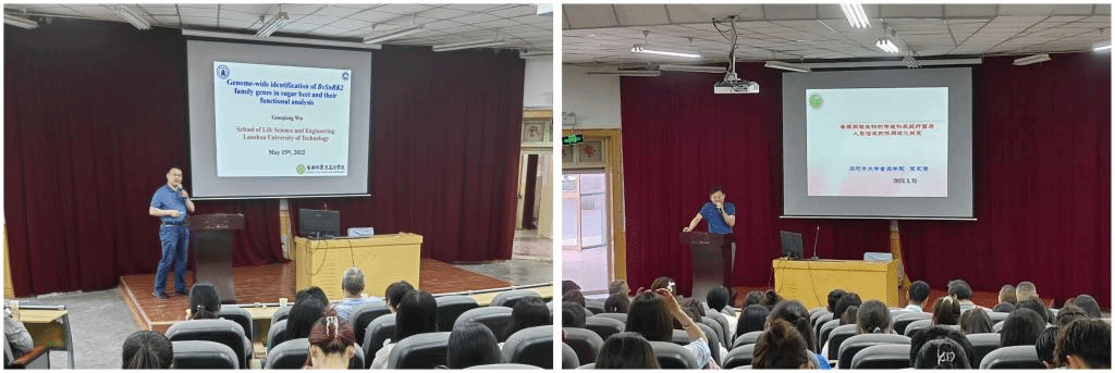 报告会上,伍国强教授以“嗜盐作物甜菜BvSnRK2s家族基因挖掘及其功能探究为题”,介绍了嗜盐作物甜菜基因挖掘和鉴定到6个BvSnRK2s家族成员,构建了其过表达载体,在烟草中遗传转化后,显著增强了转基因植株的耐盐性和抗旱性,为北方地区农作抗逆性遗传改良提供理论支持。