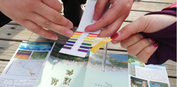 在张掖城市湿地博物馆,大家通过标本、影像、幻影成像等高科技技术,近距离感受和了解了张掖众多珍稀濒危鸟种,切身感受到了保护湿地环境的重要性。参观结束后,党员结合专业知识,对黑河水取样,用试纸法检测了水的PH,并将其带回实验室做进一步的检验,为以后的课题研究打下基础。